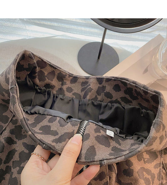 Design sense personalized fashion zipper high waist A-line leopard skirt 5448