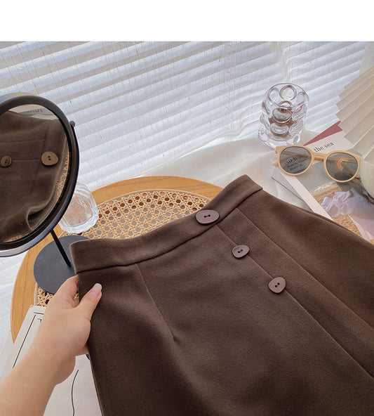 Double breasted decorative high waist design sense of aging retro A-line skirt 5444
