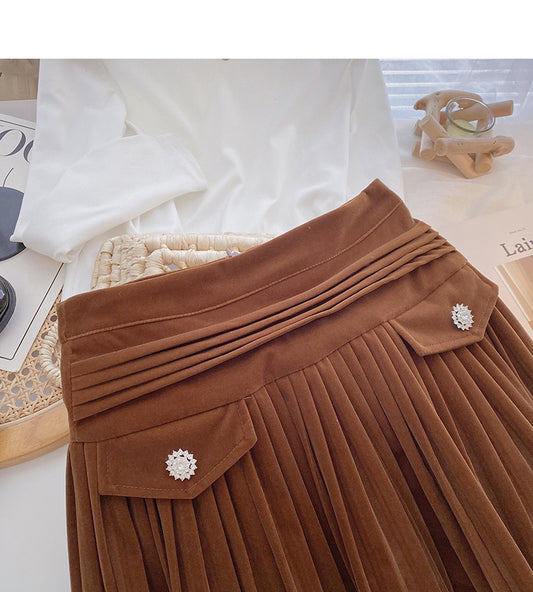 New Korean high waist slim, niche design, pressure pleated skirt 5395