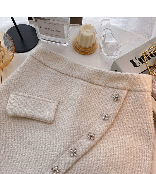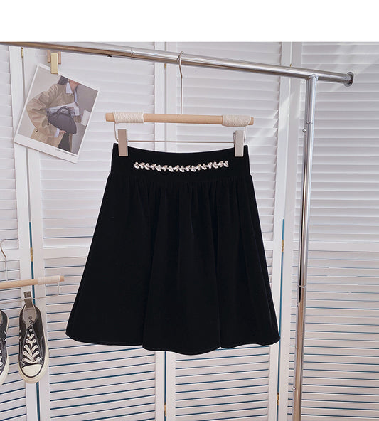 Design sense irregular diamond inlaid decorative high waist A-shaped skirt 5391
