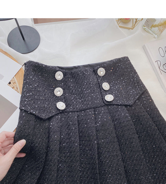 Pleated skirt women's diamond studded high waist Sequin A-line skirt 5390