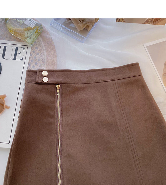 Slim design zipper high waist skirt 5375