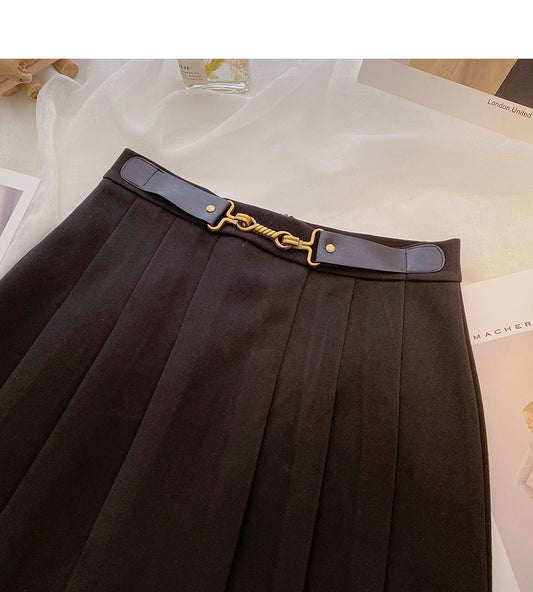 Hong Kong style leisure high waist A-line pleated skirt 5388