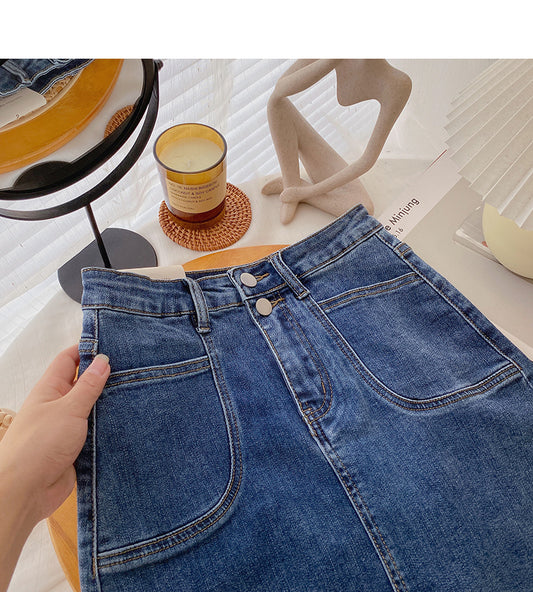 Denim skirt design small pocket high waist A-line casual skirt 5389