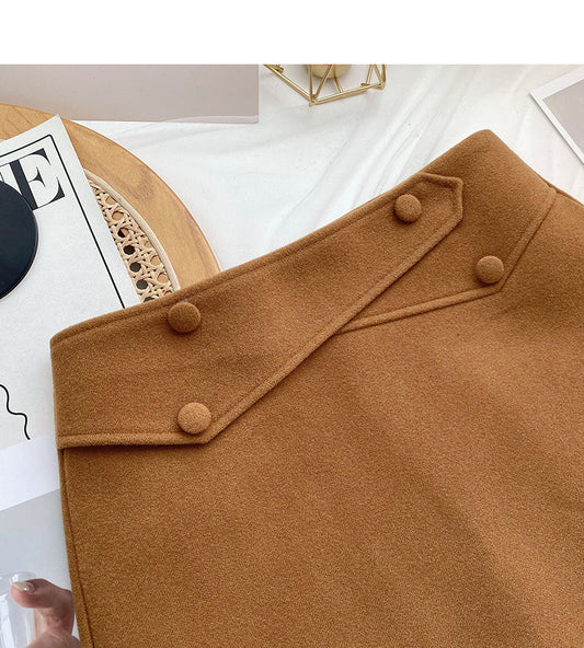Design sense personalized button high waist slim A-line skirt 5365