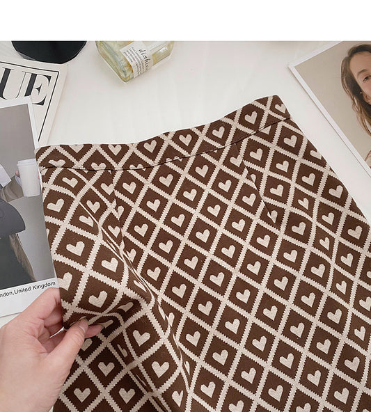 Retro personality love check color contrast slim high waist A-line skirt 5362
