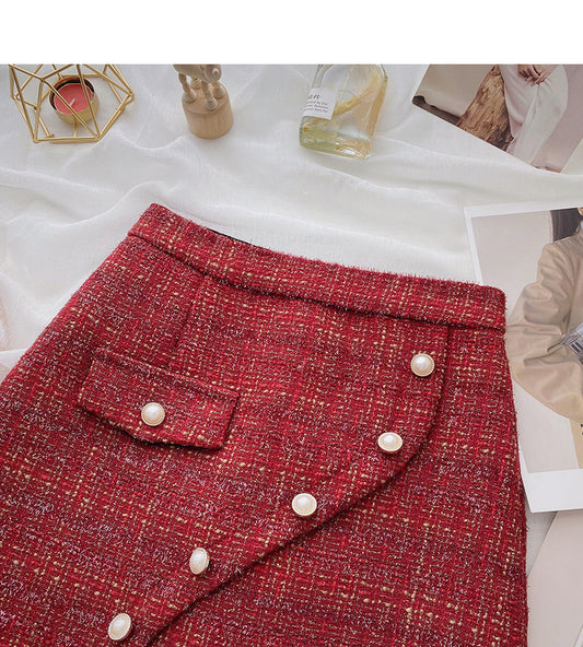 Small fragrant woolen skirt, Hong Kong Style Plaid high waist A-shaped short skirt 5363