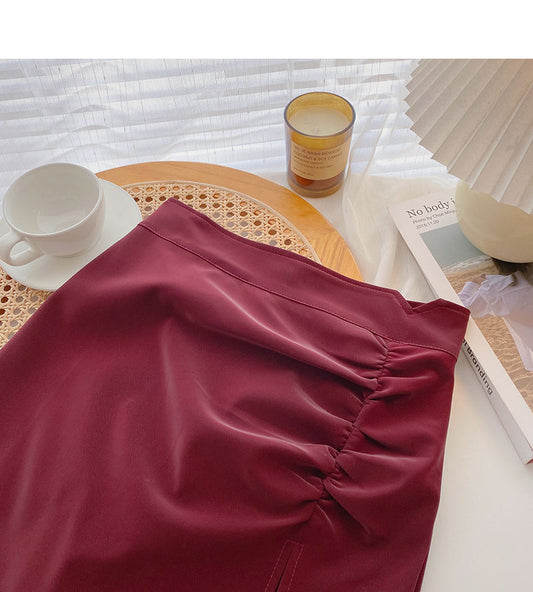 The new Korean fashion retro pleated and forked slim Hip Wrap Skirt 5356