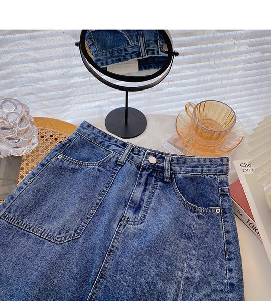 Denim bag hip short skirt personality hole high waist A-line skirt 5366