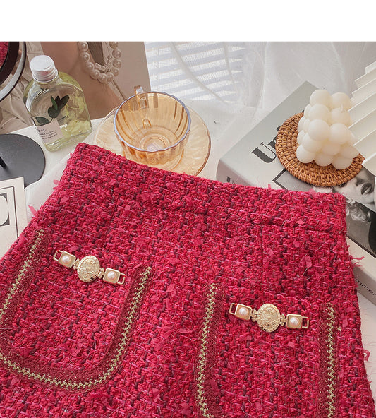 Small fragrant wind tweed A-shaped skirt 5368