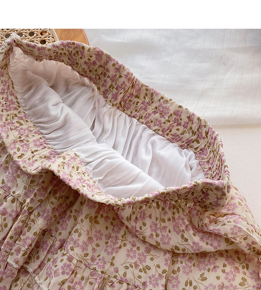 Sweet broken flowers show thin high waist A-shaped medium length skirt 5823