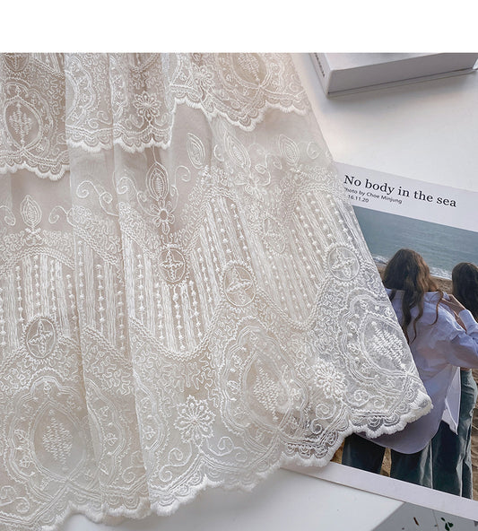 Temperament high waist pleated lace A-line skirt 5815