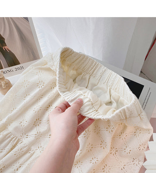 Korean version slim sweet hollowed out floral A-line skirt 5818