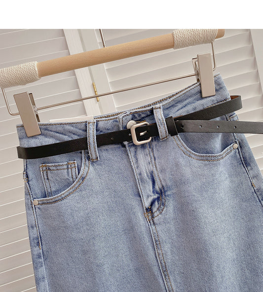 Korean version small fresh pure color versatile high waist skirt 5821