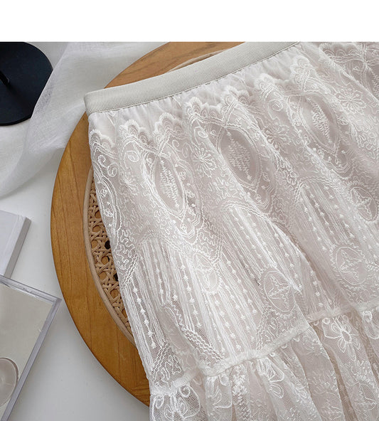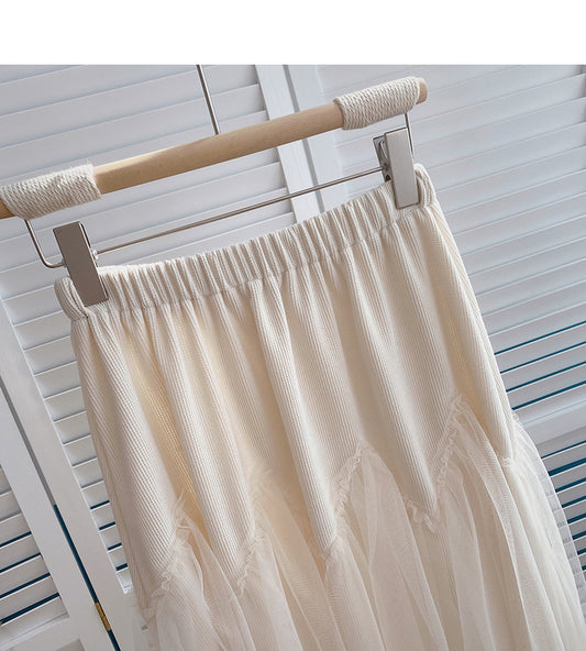 Slim and fairy, versatile, elastic waist, medium and long skirt 5797