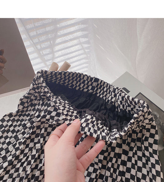 Irregular plaid skirt women's slim high waist elastic A-shaped long skirt 5807