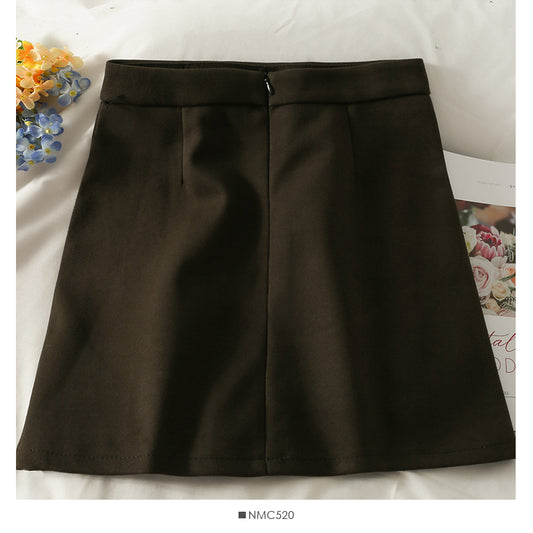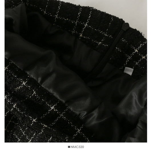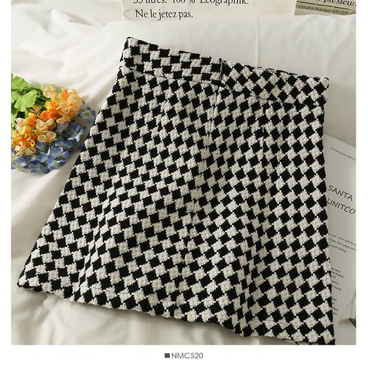 Hong Kong Style Vintage tweed Plaid high waist slim A-shaped wrap hip skirt 2622