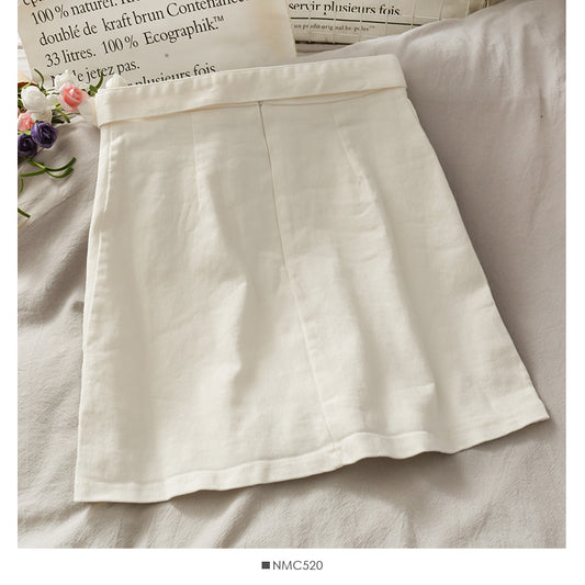 Hong Kong style retro elastic waist thin medium length split skirt 2628