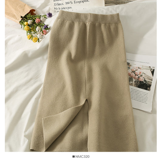 The New Retro elastic waist is thin, medium and long knitted Hip Wrap Skirt 2631