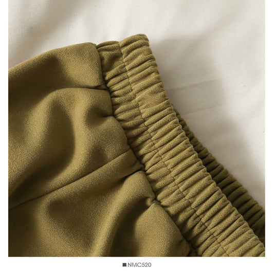 Hong Kong style retro vertical stripe elastic waist thin solid A-line skirt 2625