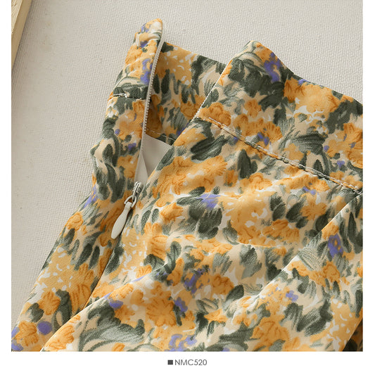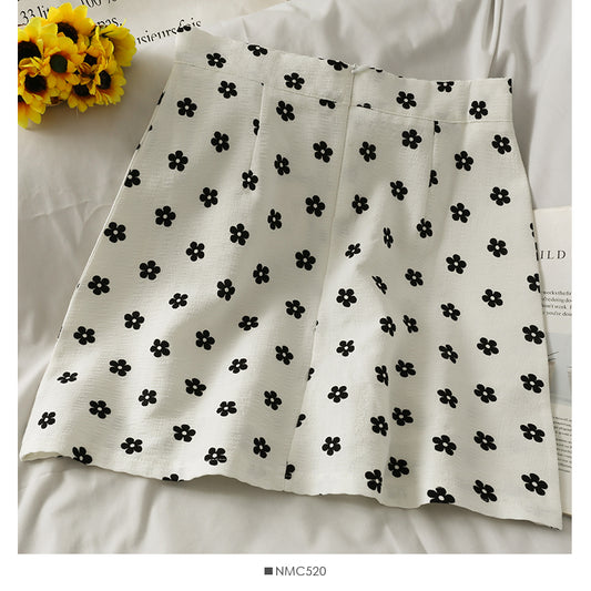 Hong Kong Vintage printed high waist slim short Hip Wrap Skirt for women 2619