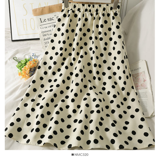 Hong Kong Vintage printed elastic waist thin over knee A-line skirt 2623