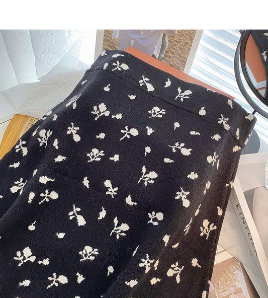 Korean fashion high waist A-shaped medium and long skirt 5764