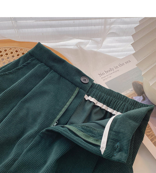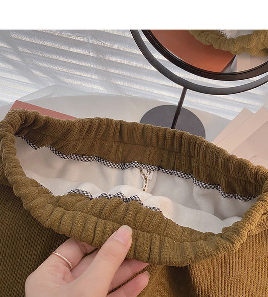 Hong Kong style leisure solid color high waist corduroy dress 5776