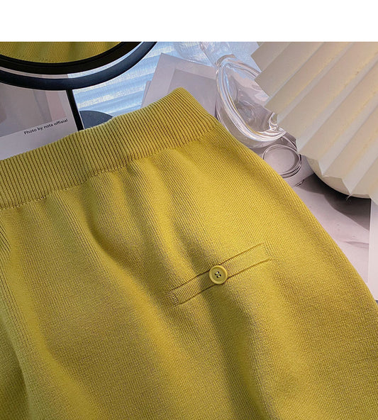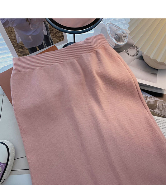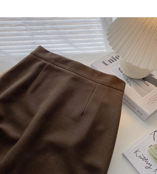 Hong Kong Style thin high waist split A-shaped medium and long skirt 5770