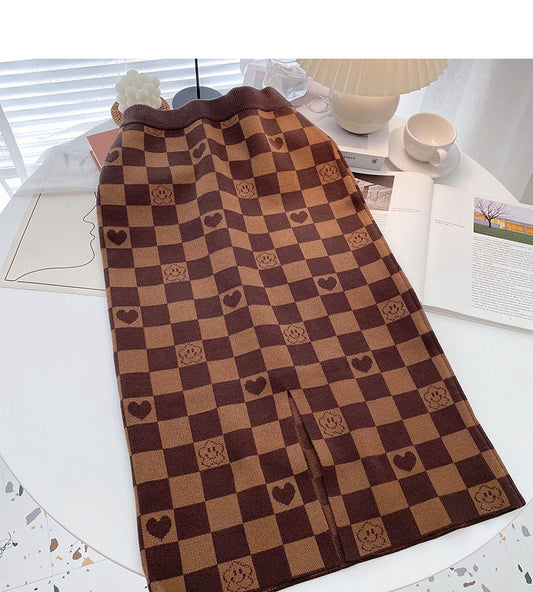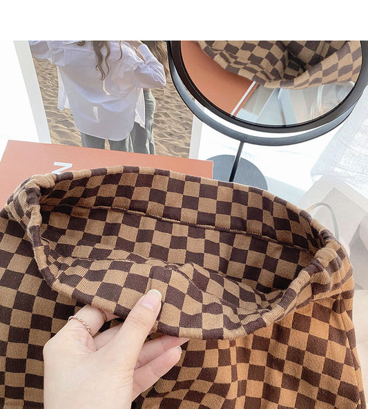 Retro fashion net red checkerboard high waist A-shaped skirt 5763