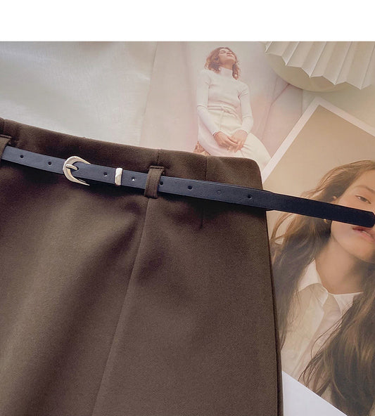 Retro and versatile back split high waist A-shaped thread skirt 5765