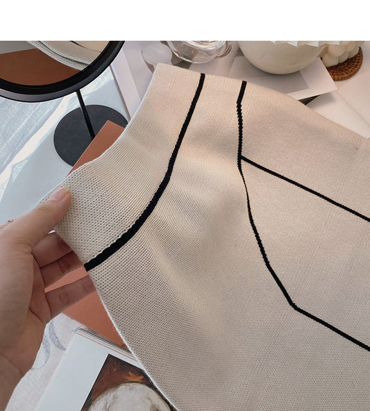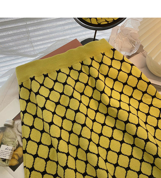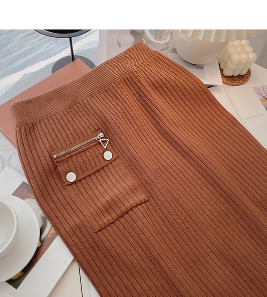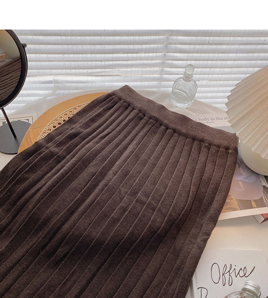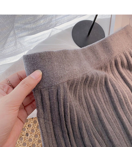 Retro fashion niche A-shaped high waist knitted skirt 5756