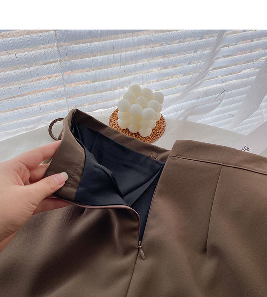 Small man, foreign style, versatile, high waist, back split A-line skirt 5754