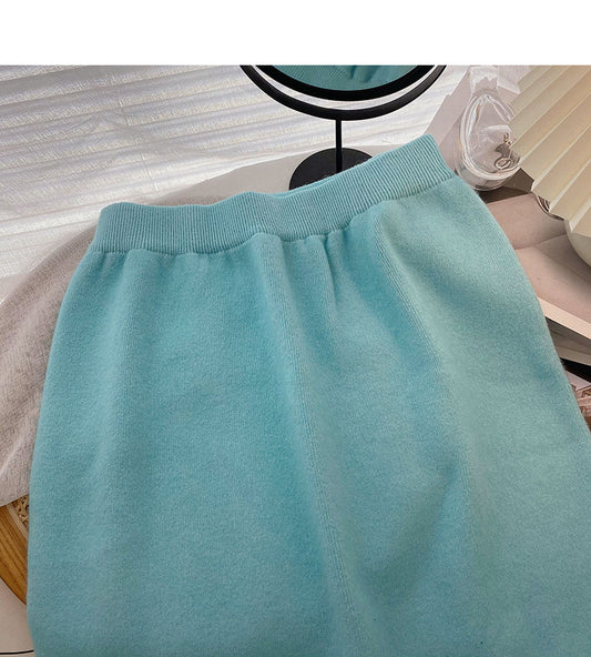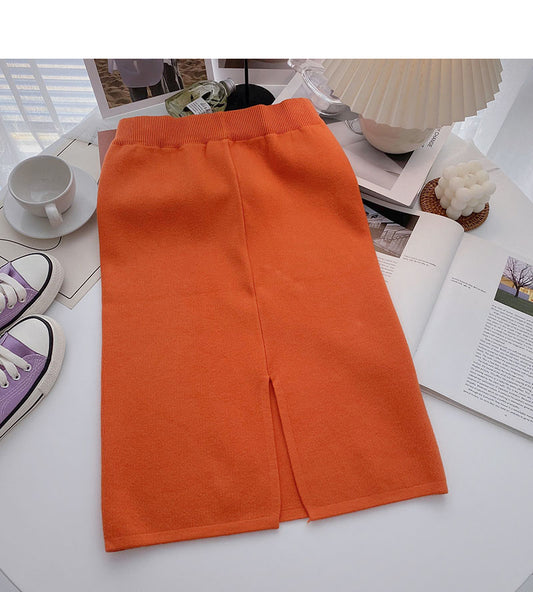 Simple and versatile thread knitted high waist split A-line skirt 5752