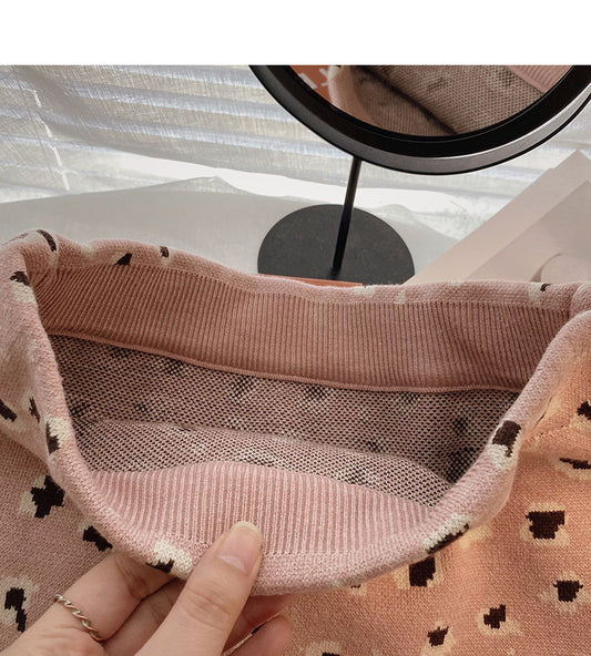 Temperament: Hong Kong style leisure retro leopard print high waist A-line skirt 5757