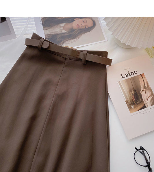 Hong Kong style fashion slim A-shaped high waist leisure skirt with belt 5758