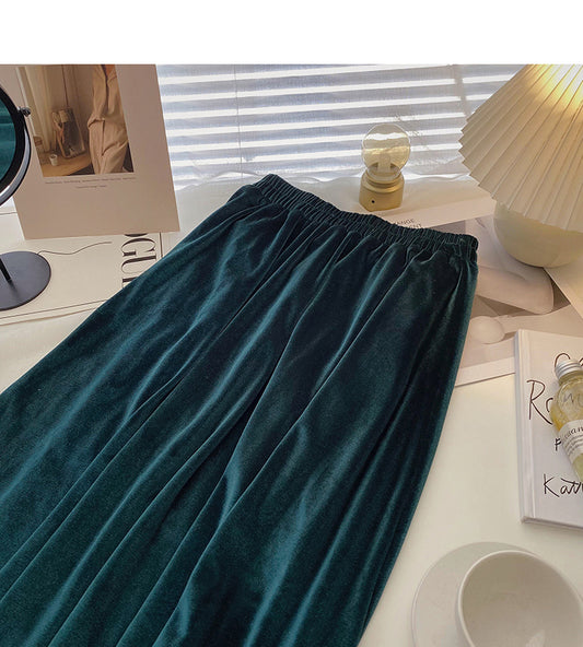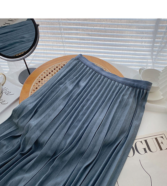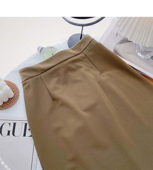 Fashion simple temperament solid color thin ins medium and long skirt 5732