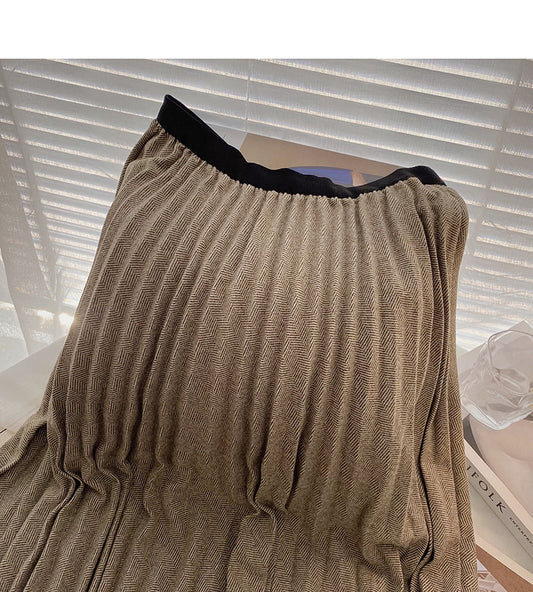 Niche design fashion pleated A-shaped medium and long skirt 5735