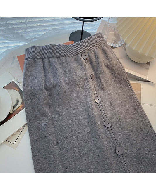 Design sense single breasted split A-line slim Knit Skirt 5741