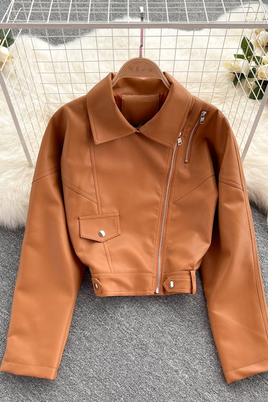 Leather women's slim and versatile Motorcycle Jacket 1559