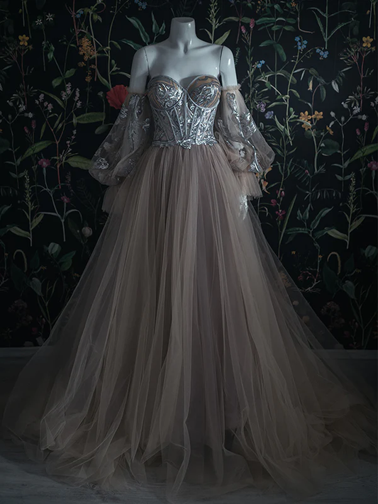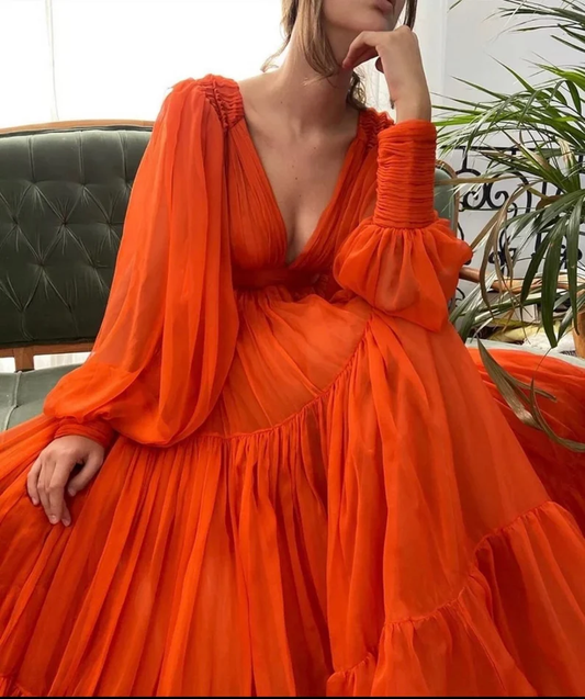 Anpassbares langes Partykleid mit Puffärmeln gh2151