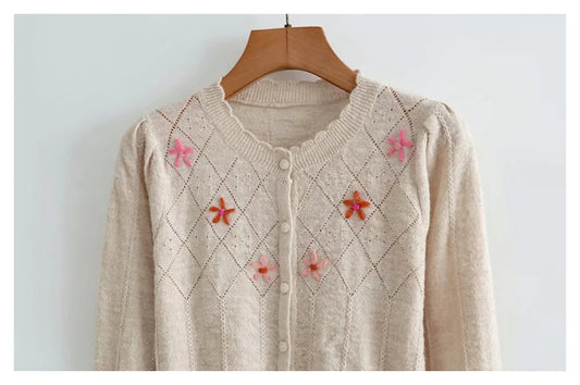 Langärmlige Strickjacke mit bestickter Brust 7251