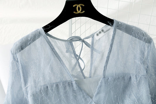 Feenhafter schmaler Strumpfhalterrock aus Gaze mit hoher Taille für Damen 2676