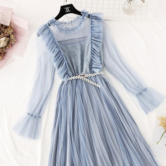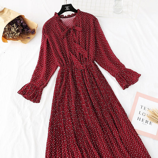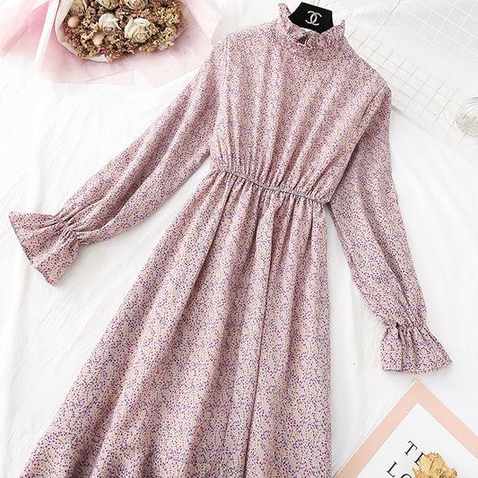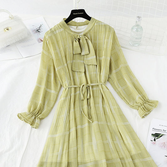 Französisches Retro-Knie-Chiffon-Langarmkleid 3833