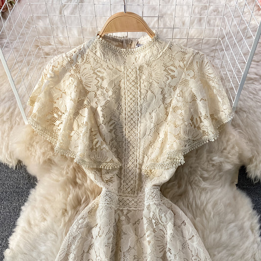 Französisches schlankes Temperament schmales Spitzenkleid mit Stehkragen 3340