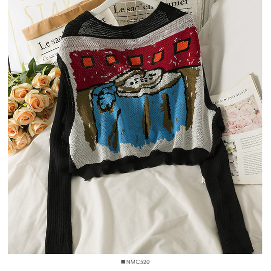 Französischer kleiner Schal ultrakurzer Pullover Damen altersreduzierender schmaler Schal über Strickjacke 2008