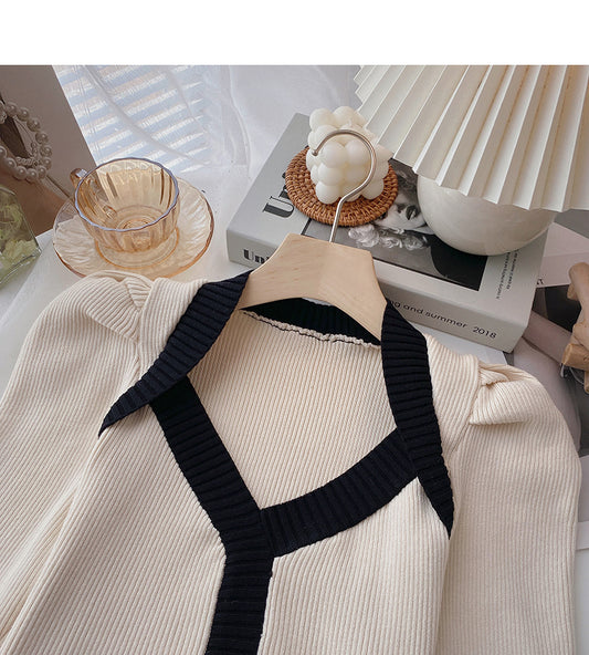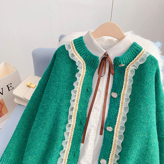 French Vintage Pullover Damen Design Sense Nischen Strickjacke 4975