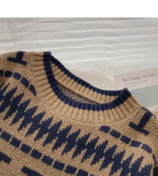 Lazy Jacquard locker gestrickter Vintage-Pullover 7490
