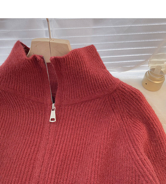 Lazy Loose Zipper Half High Neck Long Sleeve Top 5884