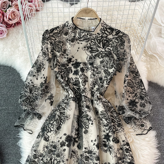 Leichtes, luxuriöses, hochwertiges, besticktes Mesh-Kleid 2977